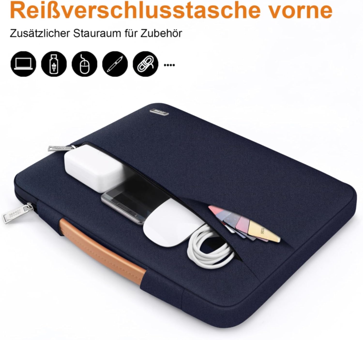 - Vordertaschen: Ein Hauptfach bietet guten Schutz für Ihren Laptop. Die 13 zoll Laptop hülle hat zwei Fronttaschen. Eine Reißverschlusstasche bietet Platz für Zubehör, Maus, Ladeadapter und Smartphone. Und eine andere dient zur Aufbewahrung von Stiften, Karten oder anderen kleinen Gegenständen.